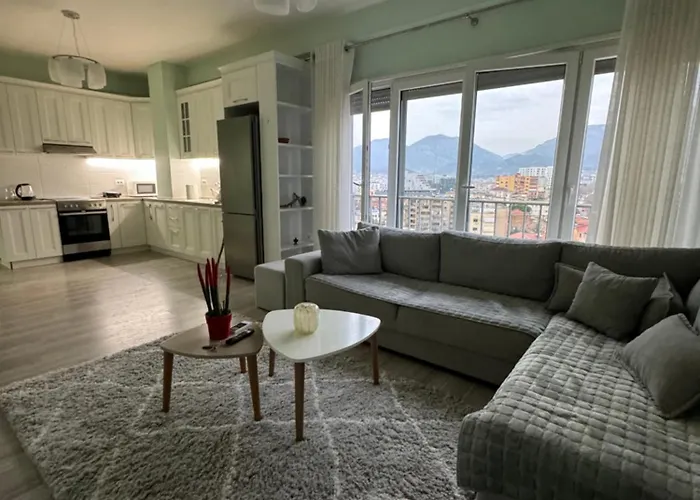 I den 93 m² stora lägenheten ligger inom 19 minuters promenad från Toptani shoppingcenter. En 15 minuters promenad tar dig till Tiranas centrum. Den här lägenheten ligger också nära Galeria Kombëtare e Arteve.